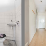 Ruime hal met toegang tot alle vertrekken. Meteen aan de rechterhand bevinden zich de meterkast, het toilet en de badkamer. De royale woonkamer met open keuken heeft een deur naar het balkon en grote ramen, wat zorgt voor veel lichtinval. Ook de slaapkamer beschikt over grote ramen. De badkamer is uitgerust met een vaste wastafel en een inloopdouche.