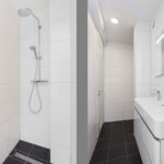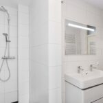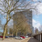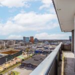 Het ruime balkon van 20 m² strekt zich uit over de volledige hoek van het appartement en is gelegen op het zuidoosten. Je kunt het balkon bereiken vanuit zowel de woonkamer als de keuken. Vanuit de woonkamer is de hal te betreden die toegang biedt tot de badkamer en de drie volwaardige slaapkamers, die je ook uitstekend kunt gebruiken als werk-, logeer- of hobbykamer. De badkamer is voorzien van een inloopdouche en dubbele wastafel.