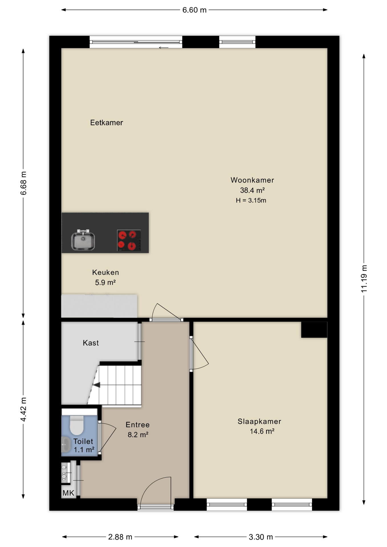 Deze verrassend ruime en uitstekend afgewerkte tussenwoning, biedt alles wat je zoekt: comfort, stijl én duurzaamheid. Met een plafondhoogte van maar liefst 3 meter op de begane grond, een luxe keuken met kookeiland en een strakke afwerking door de hele woning, is dit een huis waar je zo in kunt.