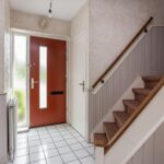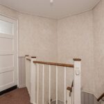 Ruime overloop met toegang tot drie volwaardige slaapkamers, allen voorzien van vloerbedekking. Twee van de slaapkamers beschikken over een vaste kast. De geheel betegelde badkamer is compact maar praktisch ingedeeld met een douche, wastafel en handdoekradiator.