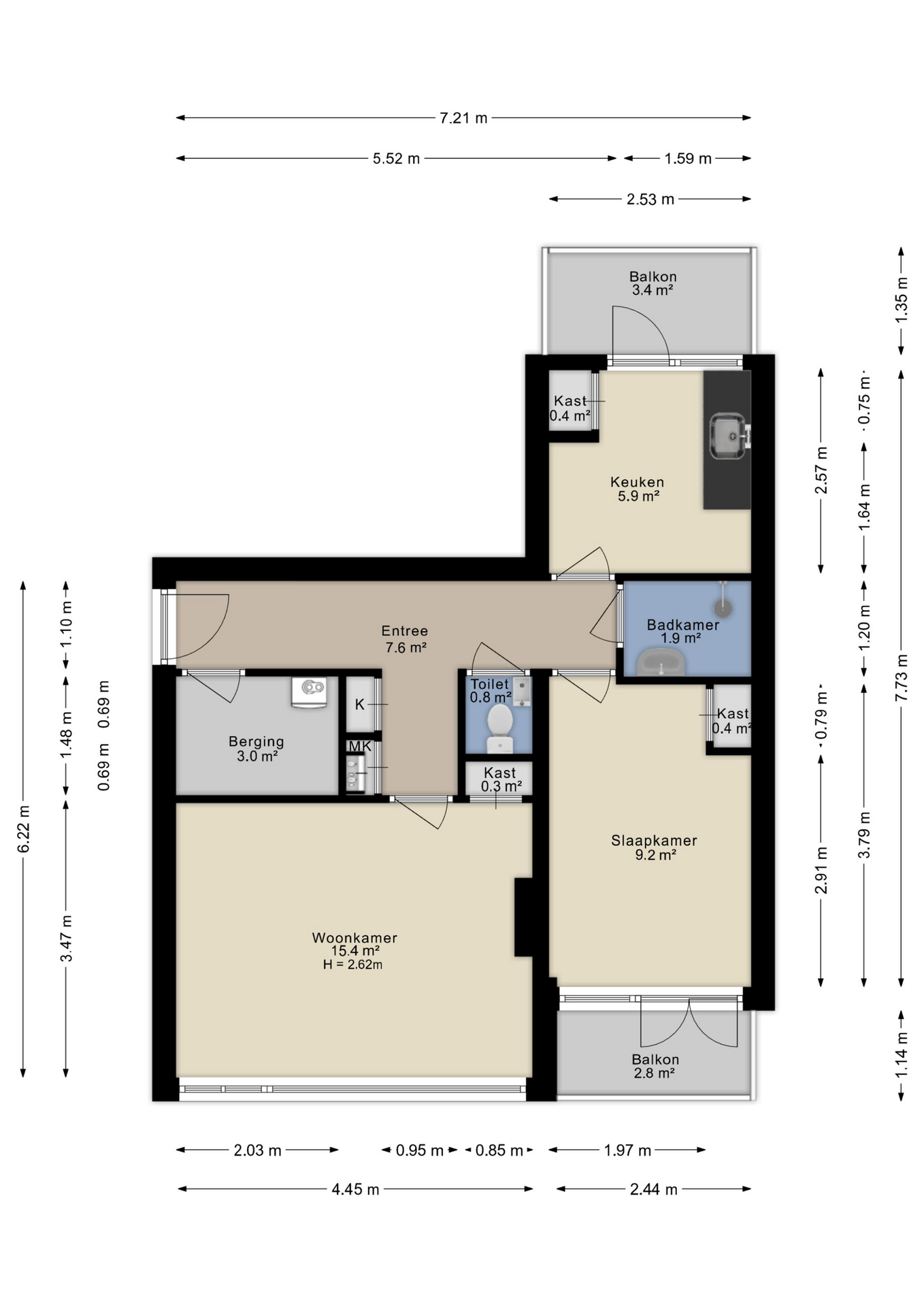 • Twee balkons: ochtend- en avondzon (zuid- en noordzijde).