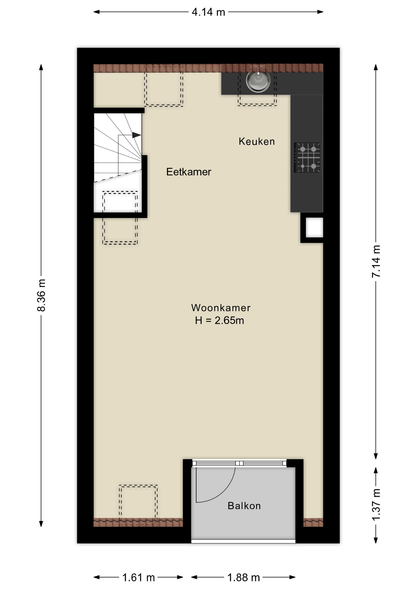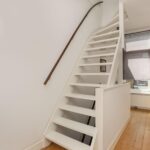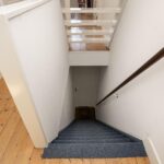 Je komt binnen via de gezamenlijke hal. Achter je eigen voordeur neem je de trap omhoog. De woonverdieping vind je op de tweede etage. Deze verdieping is in 2010 gerealiseerd en is één open, lichte ruimte. Dankzij de vele ramen en het daklicht valt er volop daglicht naar binnen.