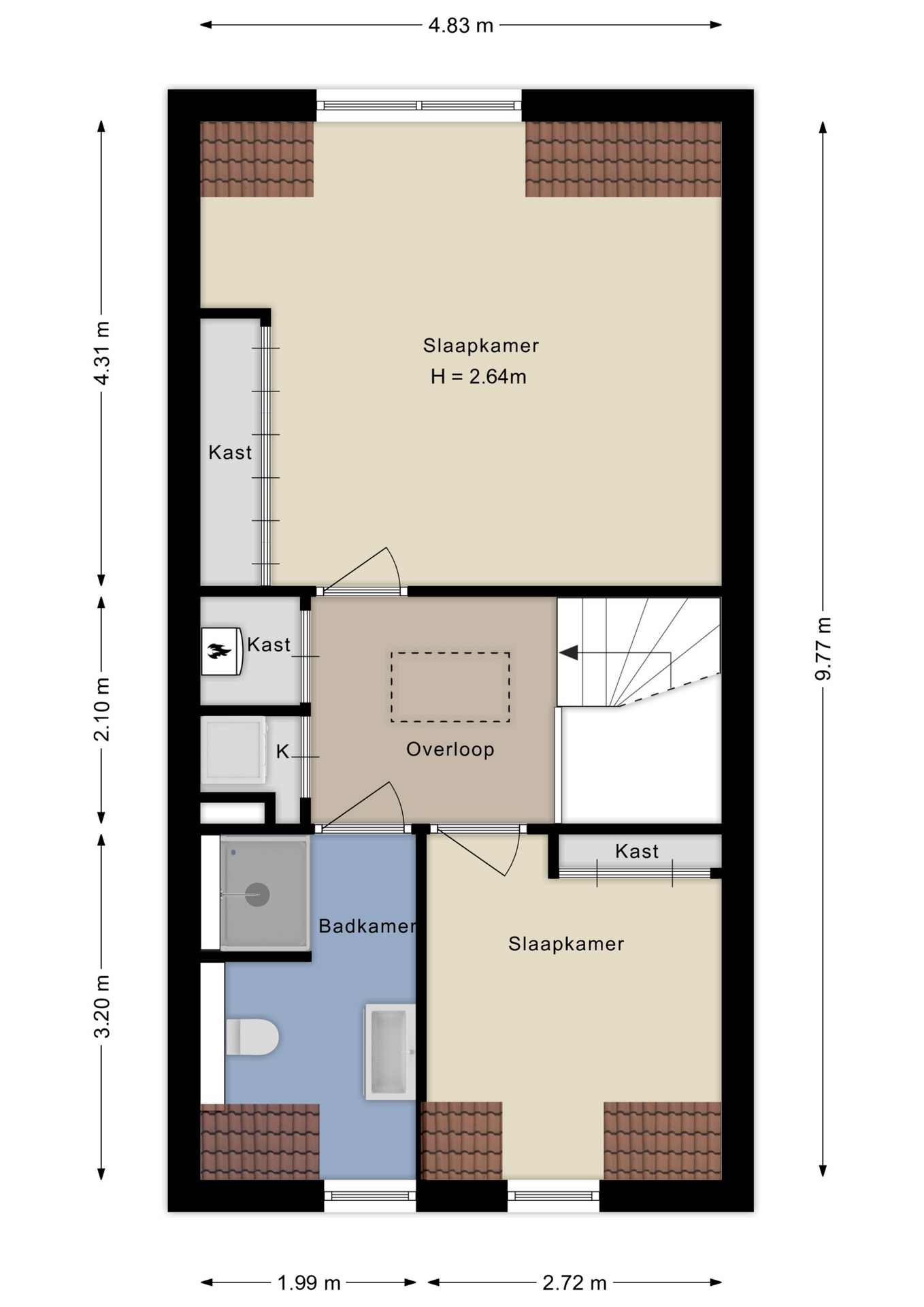 - Drie ruime slaapkamers verdeeld over de verdiepingen.