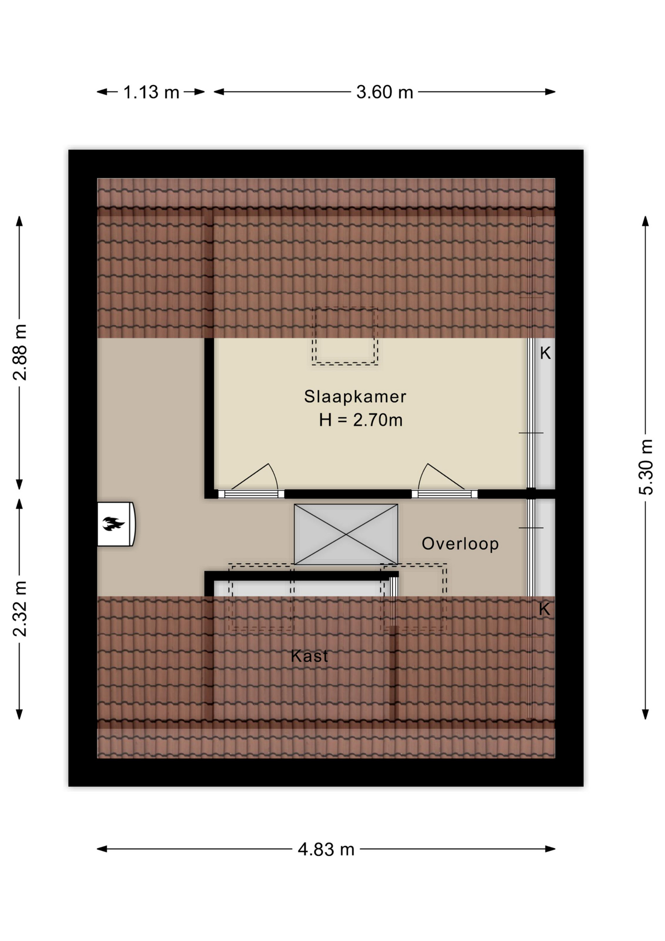 Hier bevinden zich de derde slaapkamer bereikbaar via een elektrische vlizotrap en een handige bergruimte.
