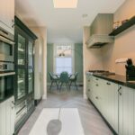 Je komt binnen in een lichte hal met toilet. De woonkamer met vloerverwarming heeft een luxueuze uitstraling en biedt voldoende ruimte voor een zit- en eethoek. De open keuken aan de voorzijde is praktisch ingericht en voorzien van moderne inbouwapparatuur. Via de woonkamer stap je zo de achtertuin in, die perfect ligt op het westen.