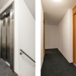 Gezamenlijke mooi afwerkte entree met brievenbussen en bellentableau, royale gemeenschappelijke hal met trappenhuis en liften. Vanuit hier zijn ook de bergingen, de gemeenschappelijke fietsenstalling en de parkeergarage te bereiken.