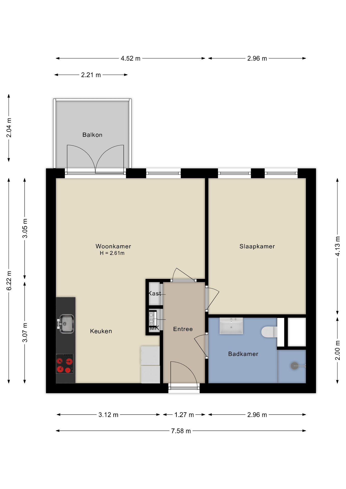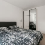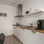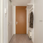 Het appartement bereik je vanuit de centrale hal. De hal geeft je toegang tot de badkamer, meterkast, de slaapkamer en de woonkamer. De badkamer is voorzien van een douchehoek, wastafel, zwevend toilet en wasmachine-/drogeraansluiting. Het gehele appartement is voorzien van een laminaat vloerafwerking. Vanuit de woonkamer heb je toegang tot het balkon. De keuken is modern en voorzien van een vaatwasser, kookplaat, afzuigschouw, koelkast en inbouwoven.