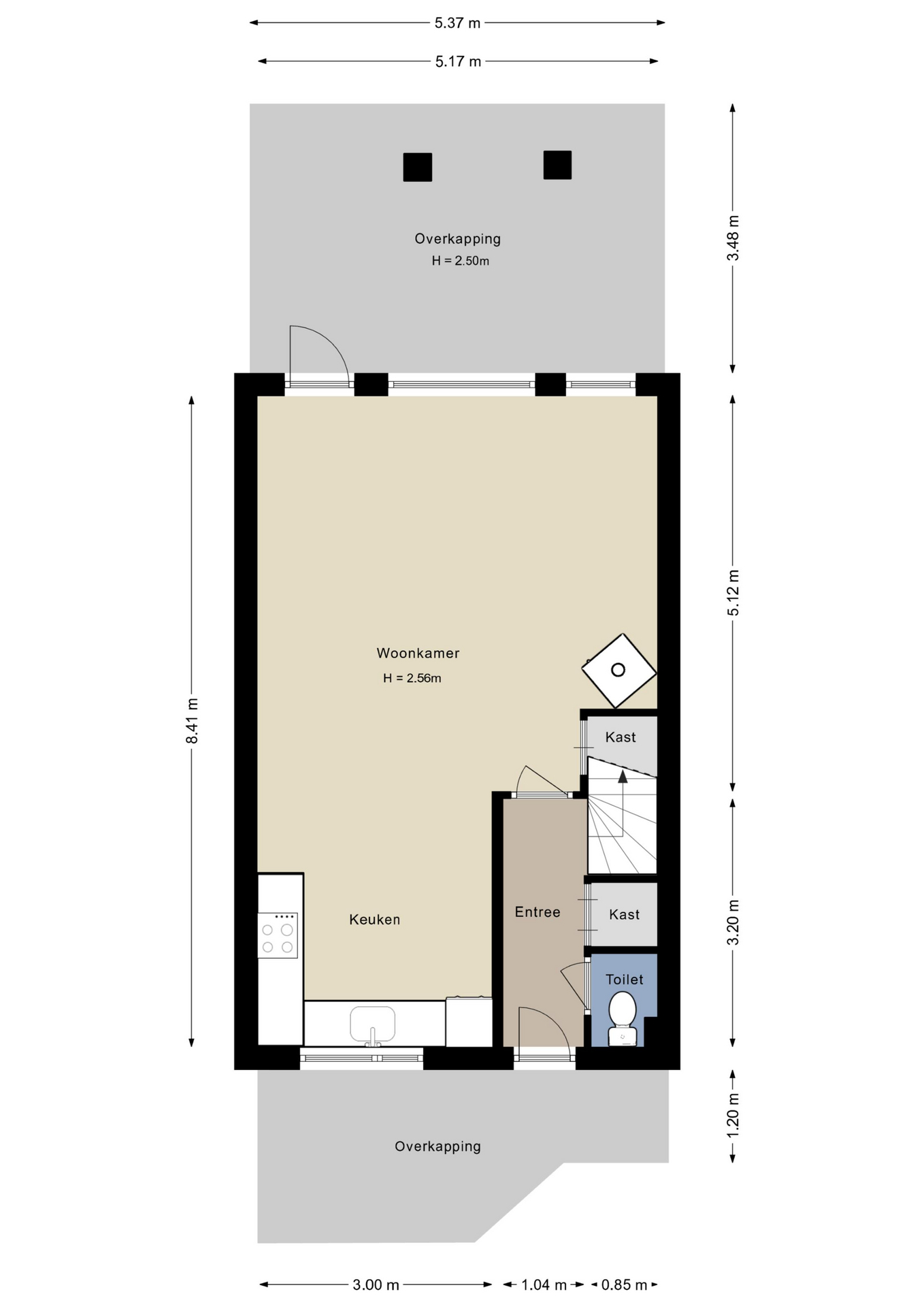 Voortuin met parkeergelegenheid op eigen terrein, berging, overdekte entree/ hal, vernieuwde meterkast, vaste kast en toiletruimte. Toegang tot de L-vormige keuken…