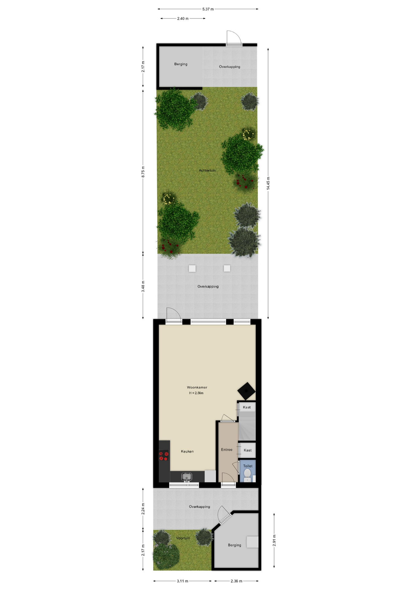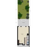 Vanuit de woonkamer bereik je de veranda. Hier kun je al vroeg in het seizoen lekker genieten van de tuin. De zonnige tuin is diep te noemen (circa 14,5 meter) en heeft een extra berging en achterom.