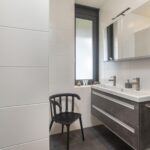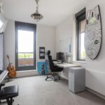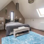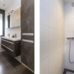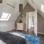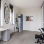 Overloop met nette toiletruimte, trapopgang naar de 2e verdieping en grote raampartij; vier slaapkamers v.v. marmoleumvloer, grote raampartijen met draaikiepvensters, radiator en strak afgewerkte wanden, één kamer geeft toegang tot het balkon; twee badkamers, elk volledig betegeld en v.v. een badkamermeubel met lades en dubbele wastafel, spiegelkast met verlichting, verticale wandkast, inloopdouche met hand- en regendouche, vloerverwarming, inbouwspots en centrale afzuiging.