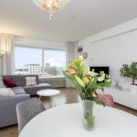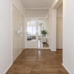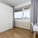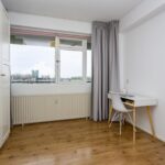 De woning is gelegen op de 5e etage van het appartementencomplex waar een lift aanwezig is. Bij binnenkomst valt gelijk de ruime en lichte woonkamer met de brede raampartij op. Het hoge plafond zorgt voor een ruimtelijke uitstraling. Door de hele woning ligt een mooie laminaatvloer. Er is meer dan genoeg plek voor een sfeervolle zithoek aan de ene zijde en een gezellig eetgedeelte aan de andere kant van de woonkamer. Een perfecte plek om urenlang na te tafelen of om bij te komen na een drukke dag.