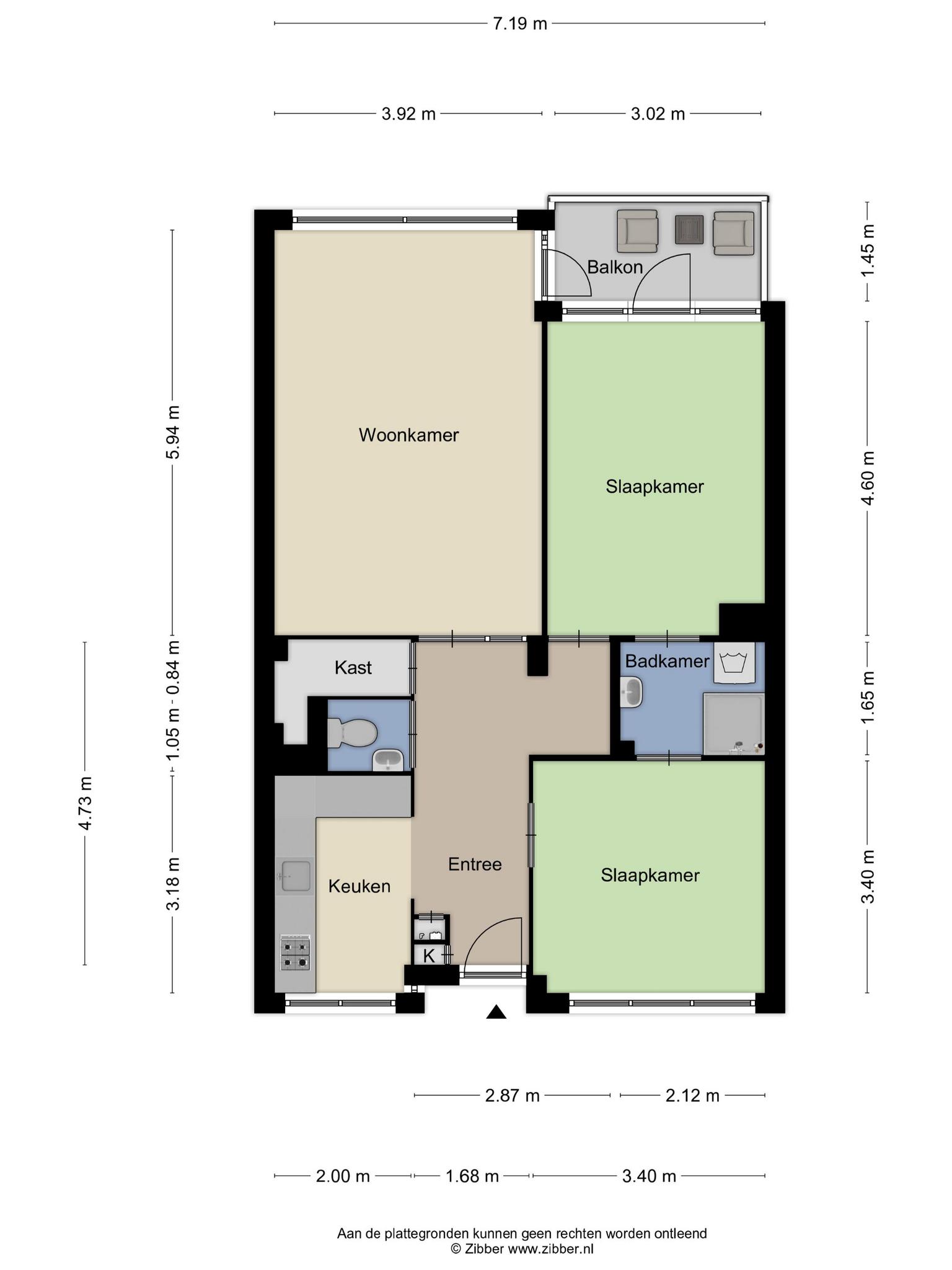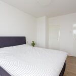 Er zijn twee ruime slaapkamers en deze bereik je via de hal. De slaapkamer aan de achterzijde is in te richten als een master bedroom en hiervandaan heb je toegang tot het zonnig balkon (4,4 m², tevens te bereiken via de woonkamer). De andere kamer is in te richten als een werkkamer of een extra slaapkamer. Er is een compleet uitgeruste badkamer met een inloopdouche, wastafel en een handige aansluiting voor de wasmachine.