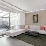 De ruime serre van circa 18 m² is volledig dicht te maken door de grote glazen schuifwand. Hier kan je nog heerlijk vertoeven als de avonden al kouder worden.