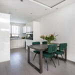 De open keuken gelegen aan de voorzijde is netjes afgewerkt met een composiet aanrechtblad en hoogglans wit. Verder is de keuken voorzien van een inductie kookplaat, afzuigkap, combi oven/magnetron, grote koelkast, vaatwasser, Quooker en inbouw koffiezetapparaat.