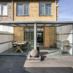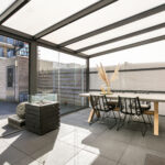• Ruime serre met glazen schuifwand (circa 18 m²)