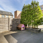 De verzorgde achtertuin ligt op het oosten en is ongeveer 55 m² groot. Hier geniet je van de ochtendzon en gezellige zomeravonden. De tuin beschikt over sierbestrating, een vrijstaande berging en achterom. Aan de achterzijde is bovendien ruimte om op eigen terrein te parkeren.