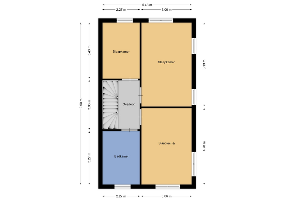 Op de eerste verdieping vindt je drie volwaardige slaapkamers. Of je nu een gezin hebt, een thuiskantoor wilt inrichten of een logeerkamer nodig hebt, deze ruimtes bieden flexibiliteit en comfort. De badkamer wordt casco opgeleverd, zodat je deze volledig naar eigen stijl en wensen kunt afwerken – met handige aansluitpunten voor douche, wastafel en een tweede toilet.