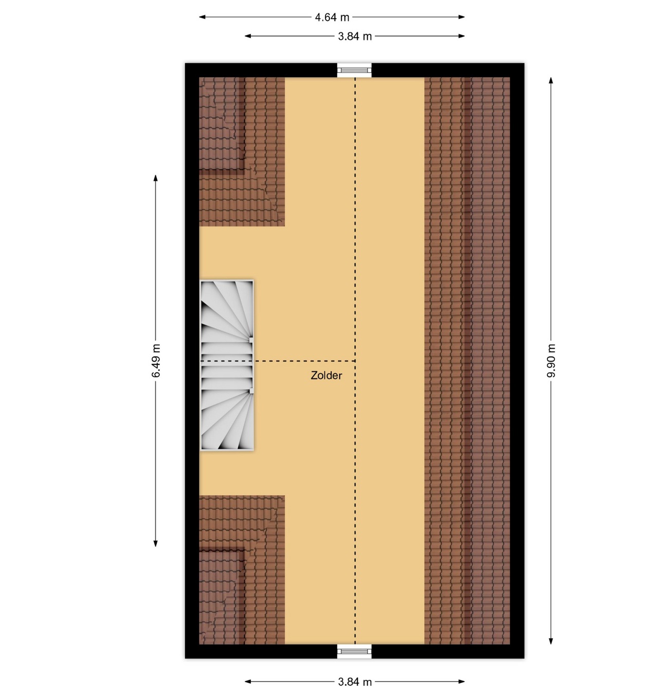De tweede verdieping is volledig in te richten als een ruime leefzolder. Laat je fantasie de vrije loop en creëer er een extra slaapkamer, hobbyruimte, werkplek of studio; de mogelijkheden zijn eindeloos om deze ruimte naar je eigen dromen vorm te geven.