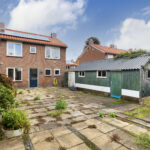 De achtertuin ligt op het westen, is grotendeels bestraat en beschikt over een vrijstaande houten berging met elektra. Je bereikt de tuin ook via de zijkant van de woning, handig voor fietsen of tuinwerkzaamheden. De voortuin is netjes aangelegd en vormt een verzorgde eerste indruk.