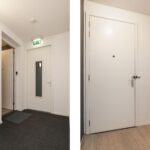 Ruime centrale entree met lift, trapopgang naar de verdiepingen, brievenbussen en toegang naar de parkeerkelder en bergingen.