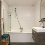 Verder zijn er twee goed bemeten slaapkamers, waarvan één voorzien is van een stijlvolle vaste kast met schuifdeuren. De badkamer biedt pure ontspanning dankzij het ligbad met douche, en ook aan praktisch gemak is gedacht met de extra wasmachine-aansluiting. In de hal vind je bovendien nog een bergkast met plaats voor zowel de CV-ketel als was-apparatuur.