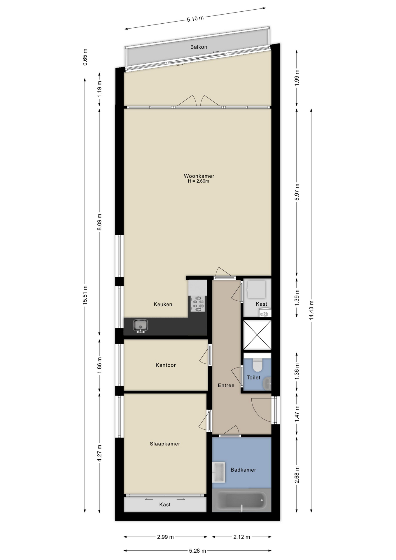 Je komt binnen via de centrale entree met lift, trap, brievenbussen en toegang tot de bergingen en parkeerkelder. Op de derde verdieping stap je binnen in een royale hal met modern toilet en een praktische bergkast met CV-combiketel en aansluitingen voor was-apparatuur.