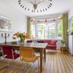 Vanuit de ruime eetkamer bereik je middels dubbele openslaande deuren de achtertuin. De eetkamer is ingericht met een houten vloer, glad plafond met sierlijst en inbouwkast. Rechts naast de eetkamer bevindt zich de open keuken.