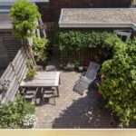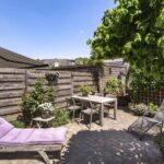 Het huis beschikt over een gezellige stadstuin met veel privacy op het noordoosten. Deze is ingericht met een zonnescherm, tuintegels, borders, hagen en een houten schutting rondom. De tuin heeft een achterom.