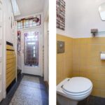De originele voordeur geeft toegang tot de hal met ruime garderobe die is voorzien van een granito vloer. Deze hal staat middels een prachtige glazen deur en glas-in-lood ramen in verbinding met de gang, tevens voorzien van een granitovloer, toilet met een authentiek fonteintje, trapopgang naar boven en beneden, richting kelder van ca. 9 m². De twee deuren links geven toegang tot de woonkamer en eetkamer.