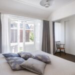 Je hebt de beschikking over een grote slaapkamer en kleinere slaapkamer, beiden voorzien van vinyl. In de master bedroom bevinden zich een inloopkamer (met L-vormige schuifdeurkast), raam en dubbele openslaande deuren richting balkon.
