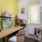 Op de 1e verdieping bevinden zich een overloop, twee slaapkamers, de ruime badkamer en een ruimte met wasdroger en wasmachine-aansluiting.