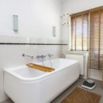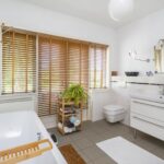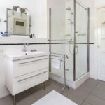 Het huis beschikt over een royale, lichte badkamer met dubbele openslaande deuren richting balkon. Deze is voorzien van een groot ligbad, douchecabine, wastafelmeubel, zwevend toilet en radiator.