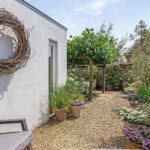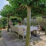 Ook rondom het huis is het goed toeven. Er is parkeergelegenheid voor twee auto's op eigen oprit, met laadpaal. Dankzij 17 zonnepanelen is de stroomvoorziening duurzaam. De zonnige achtertuin ligt pal op het zuiden; vier dakplatanen zorgen voor aangename schaduw. De tuin heeft een onderhoudsvriendelijke, Franse binnentuinsfeer met licht gestucte muren, bloeiende potplanten en een overkapte eettafel.