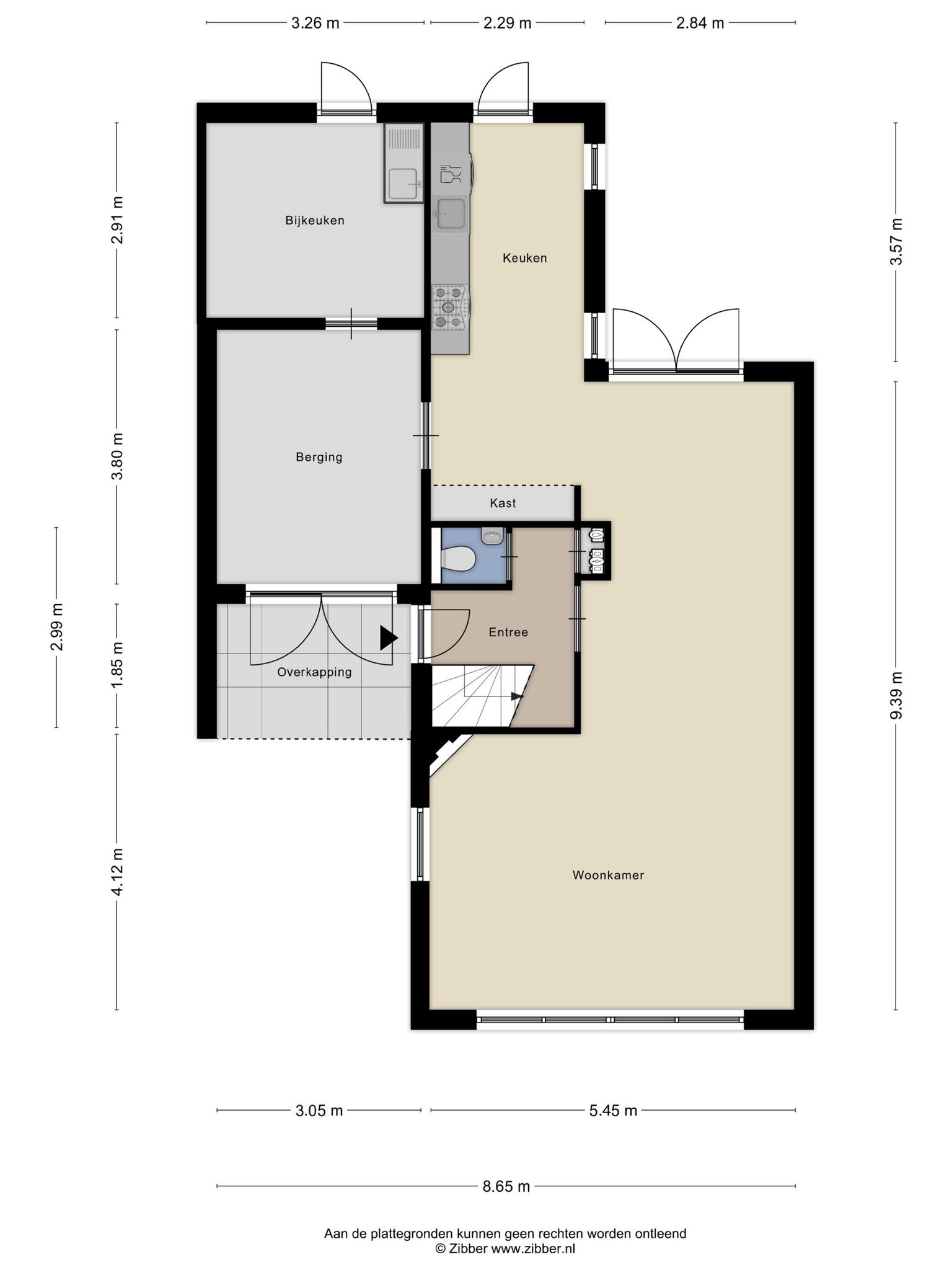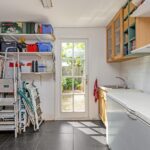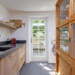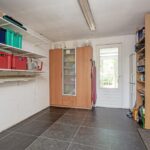 Achter de ruime berging bevindt zich een bijkeuken met klein keukenblokje en wederom een deur naar de tuin.