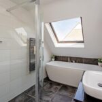 • Een luxe badkamer met ligbad, inloopdouche en vloerverwarming.