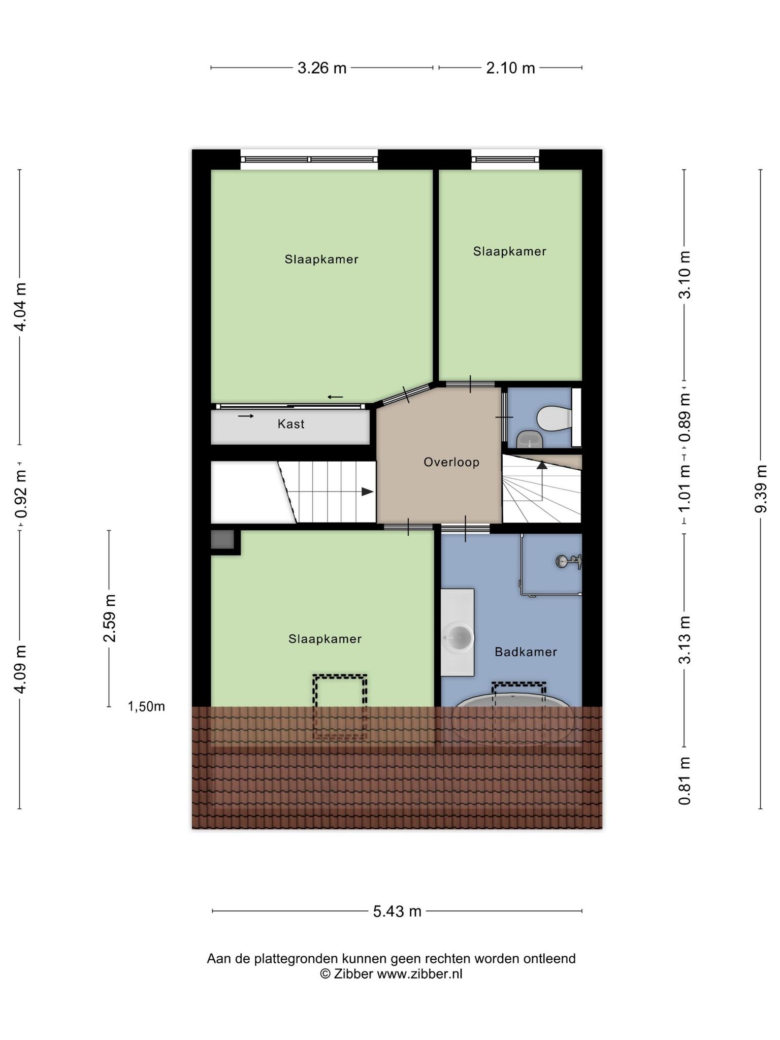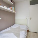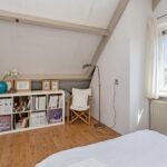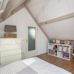 Op de voorzolder is plek voor de wasmachine en droger, plus extra bergruimte. De ruime slaapkamer daar heeft een zijraam en twee grote dakramen met uitzicht op de boomgaarden en de dijk langs het Amsterdam-Rijnkanaal.