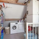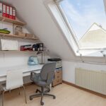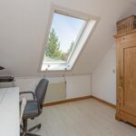 Een voorzolder met ruimte voor wasmachine, droger en cv-ketel. Grote zolderkamer met veel licht en uitzicht op het groen, plus