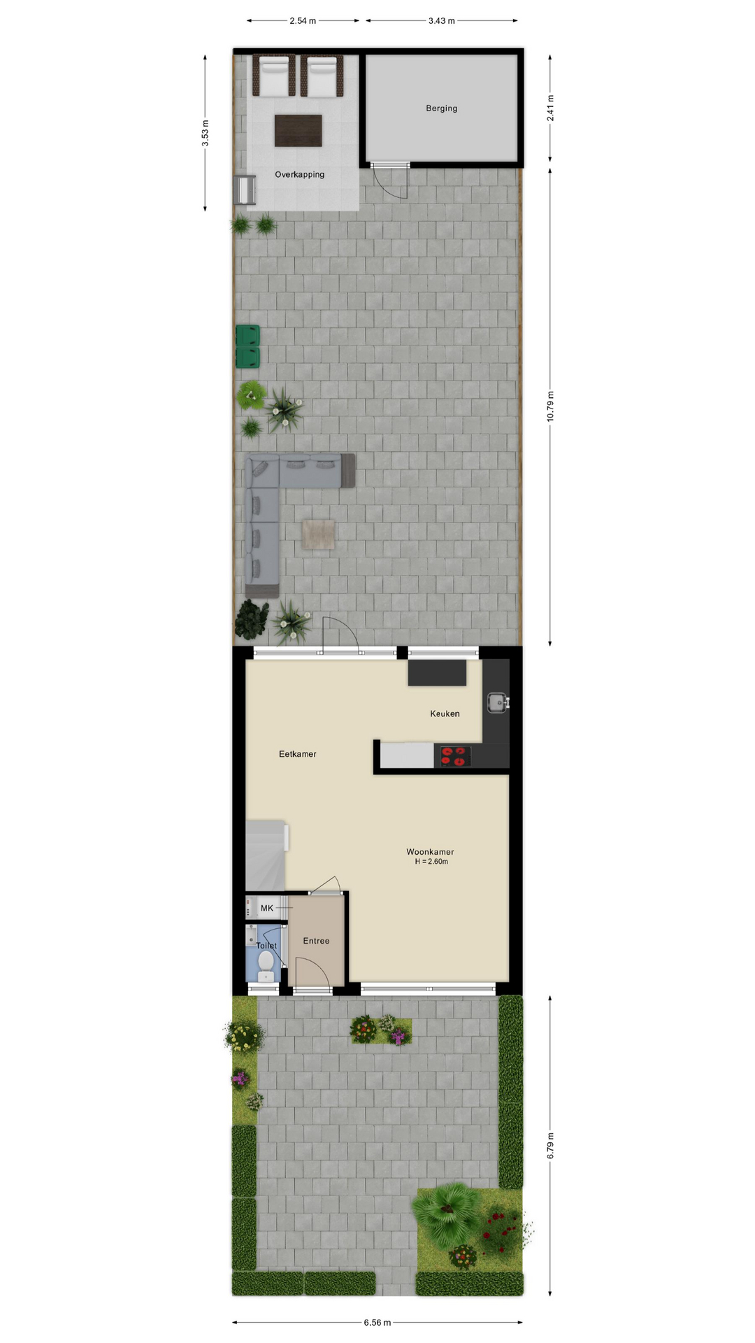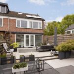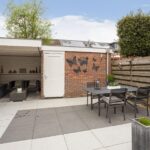 Vanuit de woonkamer loop je direct de zonnige achtertuin in. Deze is fraai aangelegd met grote terrastegels en sfeervolle beplanting. Dankzij de ideale ligging op het westen kun je hier de gehele dag van de zon genieten. Achterin de tuin bevindt zich een fijne overkapping: een heerlijke plek om te ontspannen. De riante stenen schuur biedt voldoende opbergruimte en via een handige achterom is de tuin goed bereikbaar.