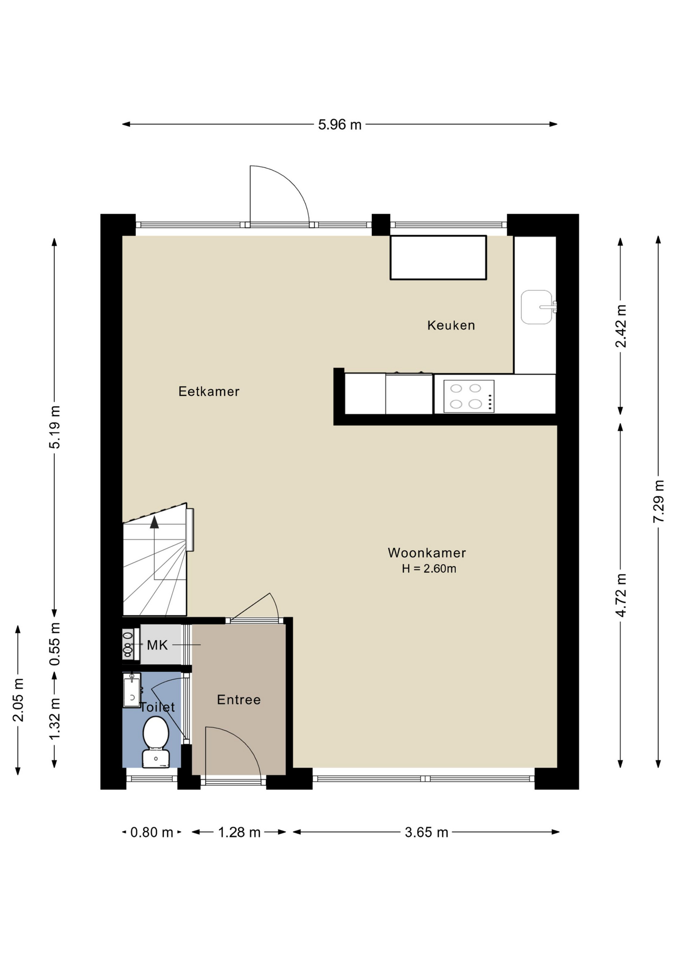 Bij binnenkomst wordt je welkom geheten in de hal, met de meterkast, de toiletruimte met fonteintje en toegang tot de living. De lichte woonkamer bevindt zich aan de voorzijde van het huis en heeft een verzorgde uitstraling met een verzorgde wandafwerking, plafonds en een nette laminaatvloer. Aan de achterzijde van de woning bevindt zich de moderne keuken, die in 2021 volledig vernieuwd is en voorzien is van hoogwaardig inbouwapparatuur: een vaatwasser, koelkast, vriezer, oven, combimagnetron, inductiekookplaat en een plintboiler.