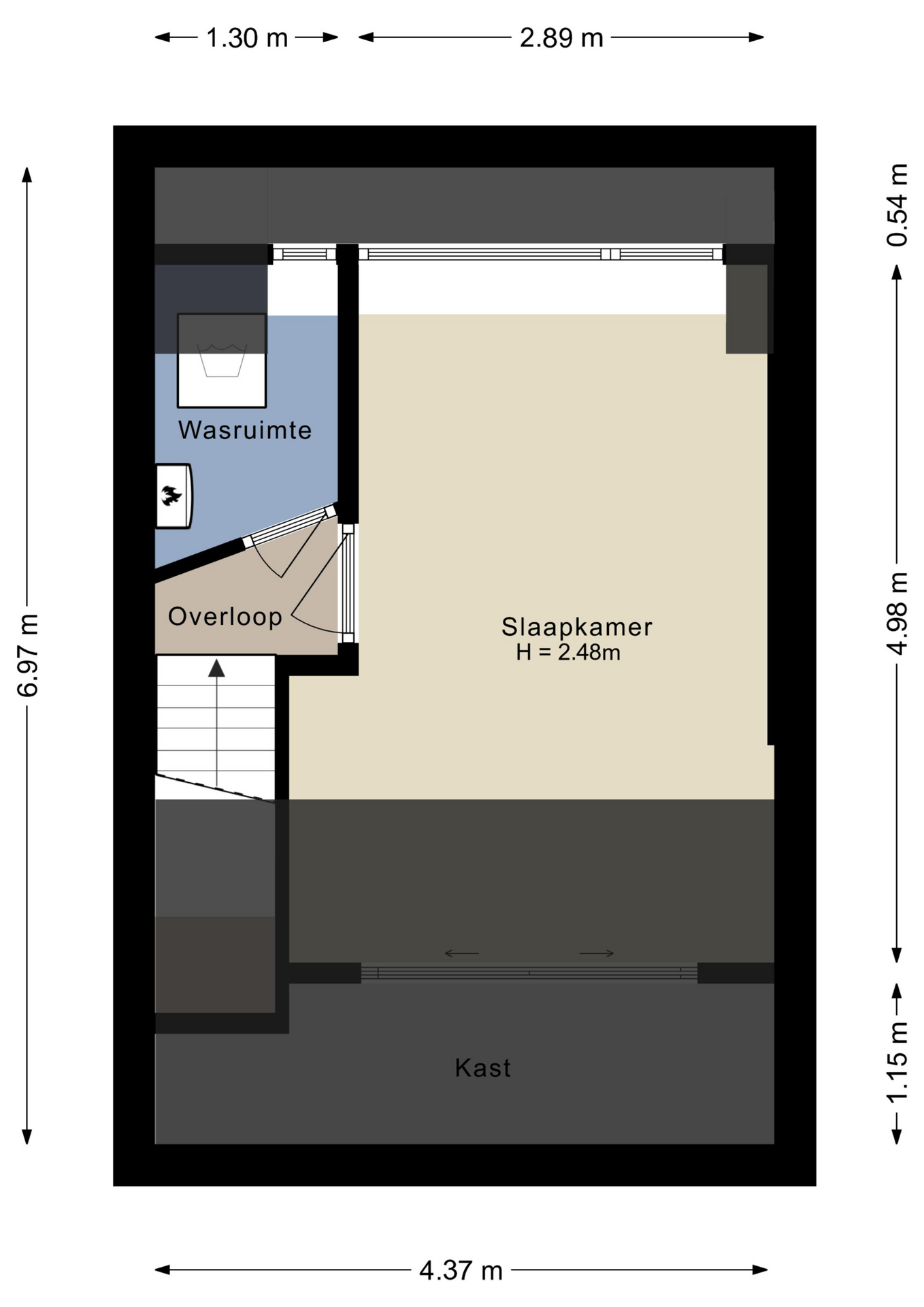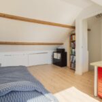 Via een vaste trap bereik je de voorzolder met ruimte voor witgoed en de c.v.-ketel. De grote zolderkamer is ruim en met name door de grote dakkapel heel licht.