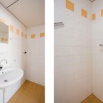 Begane grond: De woning heeft een eigen entree en een hal met een praktische bergkast. De toiletruimte is voorzien van een fontein. De woonkamer is licht en heeft openslaande deuren naar het verzorgde terras, met royaal vrij uitzicht. Het terras is gelegen op het zuidoosten, wat zorgt voor een heerlijk licht en ruimtelijk gevoel. De open keuken is voorzien van een driebloks keukenblok, maar biedt veel mogelijkheden voor een moderniseringsslag. De slaapkamer bevindt zich aan de voorzijde van de woning en heeft een aangrenzende badkamer. De badkamer is uitgerust met een douche, een vaste wastafel en een aansluiting voor de wasmachine. Daarnaast beschikt de woning over een stookruimte voor extra bergruimte met de meterkast. Er zijn twee separate bergingen, waarvan de ingang aan de zijkant van de woning te vinden is.