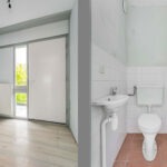 Gemeenschappelijke entree met bellentableau, brievenbussen, trapopgang en lift. De privéberging is van buitenaf bereikbaar en biedt genoeg ruimte voor fietsen en opslag.