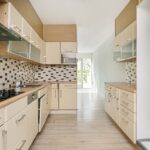 - Grote keuken met veel kastruimte en inbouwapparatuur.