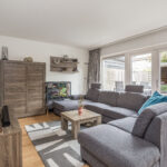 De ruime woonkamer is circa 23 m² groot en bevindt zich aan de achterzijde van de woning. De woonkamer is voorzien van een gezellige gashaard, laminaatvloer, glad gestucte muren en plafond. Een mooie open trap geeft toegang tot de eerste verdieping. Door middel van openslaande deuren is de tuin bereikbaar.