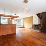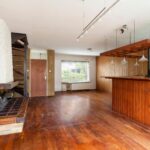 De woonkamer is royaal van afmeting, heerlijk licht door de grote raampartijen aan beide zijden en is voorzien van een hardhouten vloer, open haard en schuifpui naar de achtertuin.