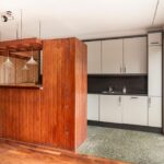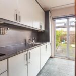De halfopen woonkeuken is aan de achterzijde van de woning gesitueerd en voorzien van een tegelvloer en redelijk modern blok met diverse inbouwapparatuur, te weten; koelkast, vriezer, keramische kookplaat, combimagnetron, wasemkap en vaatwasser.