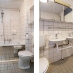 De standaard uitgevoerde badkamer is voorzien van een ligbad met jetstream en thermostaatkraan, twee wastafels, closet en aansluiting voor de wasapparatuur.