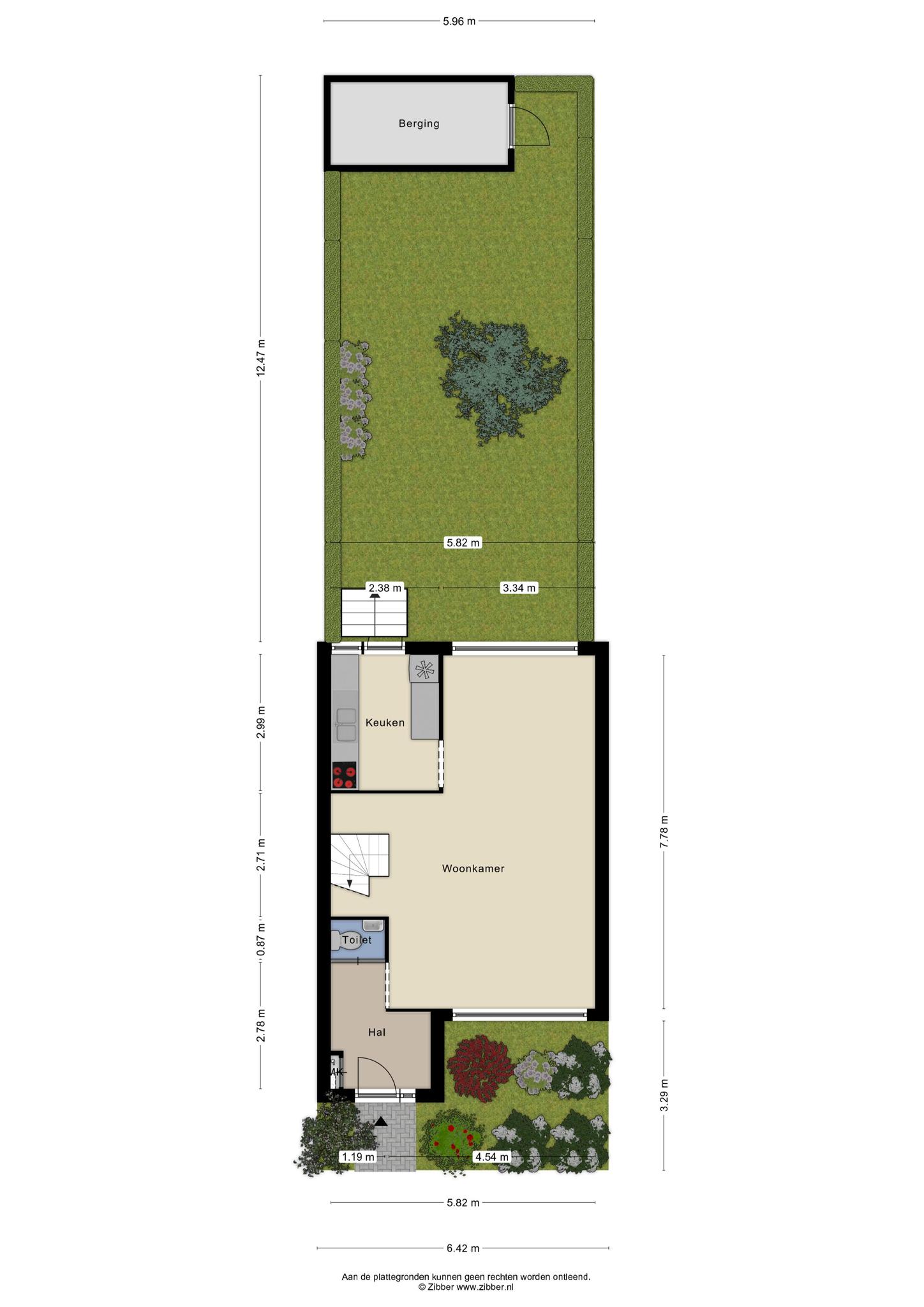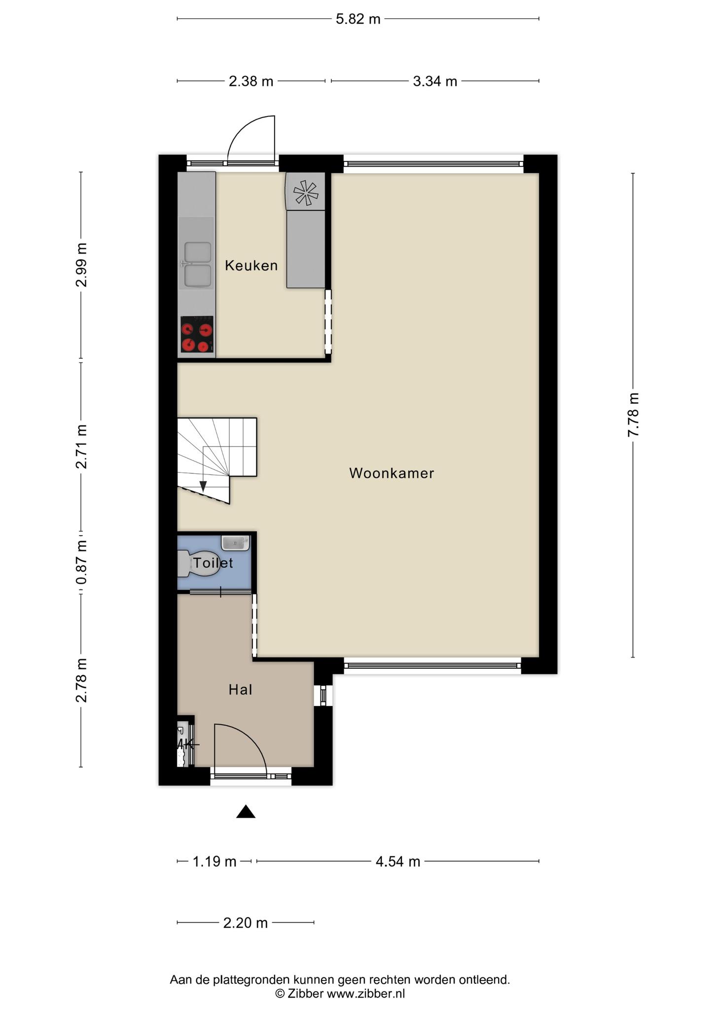 Via de voortuin bereik je de voordeur. Achter de voordeur kom je in de hal met toegang tot de meterkast, toiletruimte en woonkamer. De toiletruimte is voorzien van een closet en fonteintje.