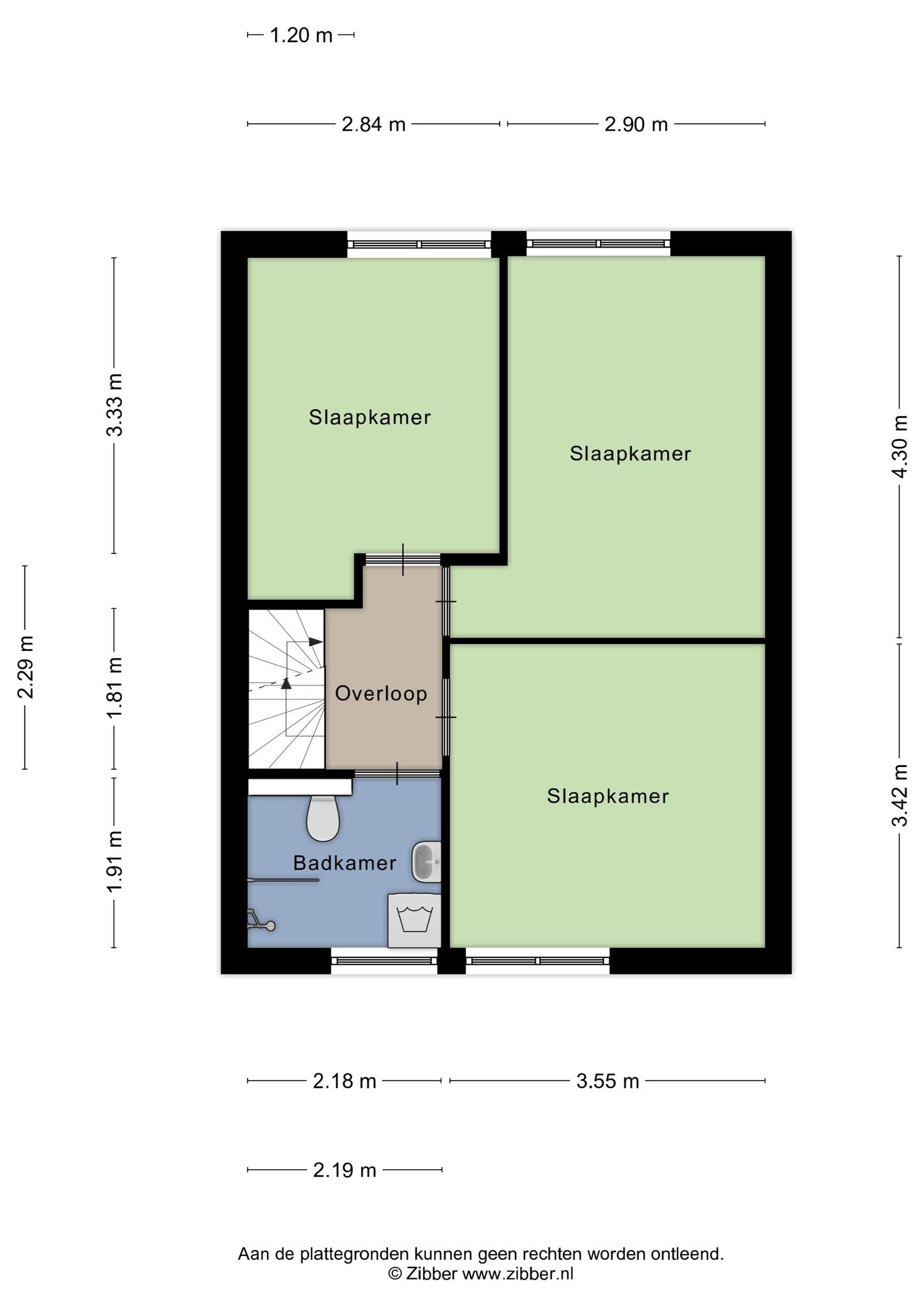 Overloop met toegang tot drie slaapkamers, badkamer en trapopgang naar de tweede verdieping. Twee slaapkamers van circa 12 m² en 10 m² liggen aan de achterzijde van de woning. De derde slaapkamer van circa 12 m² groot bevindt zich aan de voorzijde van de woning.