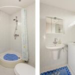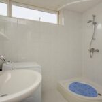 De lichte badkamer is volledig betegeld en voorzien van een hangend closet, wastafel, douche, designradiator en de witgoedaansluiting.
